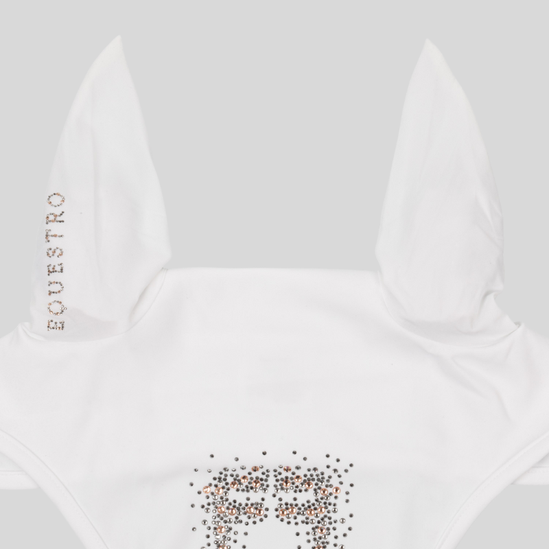 The fly veil is elegantly finished with the Equestro logo adorned with rhinestones, stylishly placed on the front. The sparkling rhinestones add a touch of refinement and glamour, completing the horse’s equipment with sophistication.