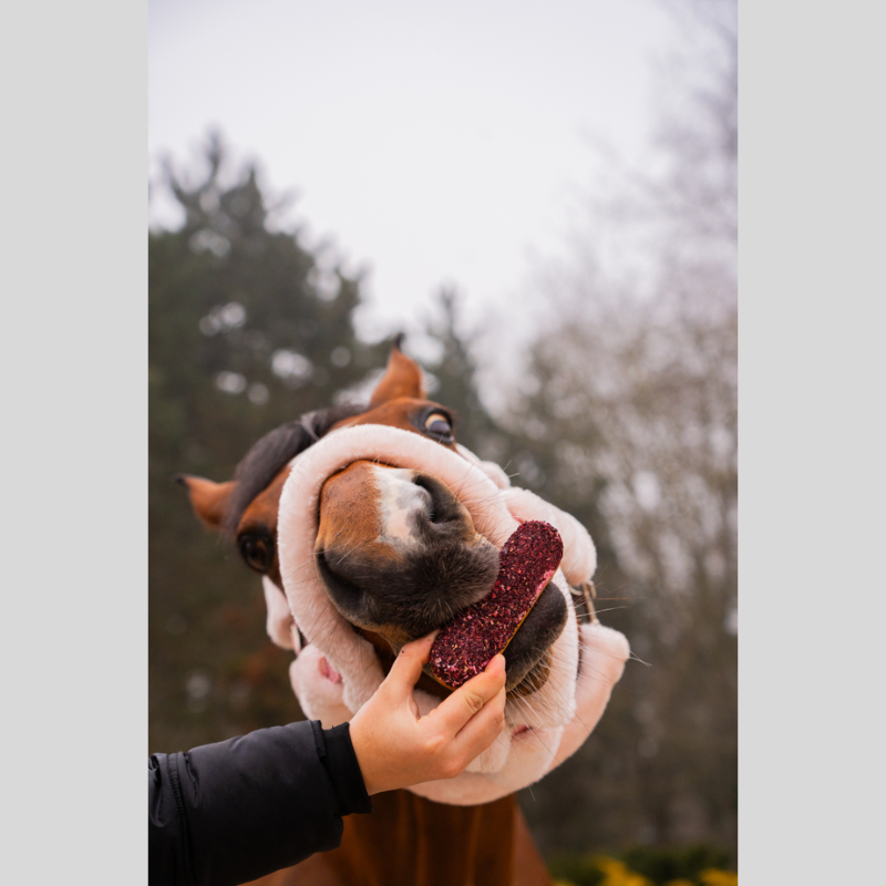 This horse cookie, carefully iced and enriched with herbs, is inspired by hibiscus and offers a treat with a refined appearance and natural softness. Designed as an elegant and original creation, it’s perfect for rewarding your horse or creating a delicate gift.