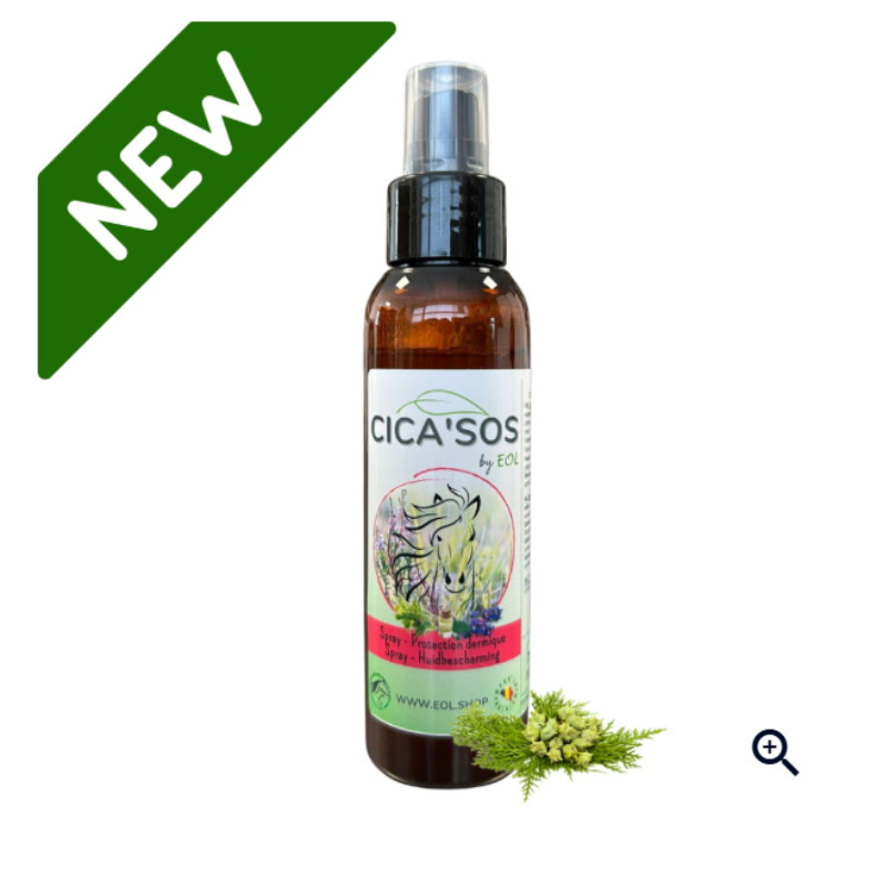 The Spray Cica SOS by EOL is a natural skin care spray for horses, developed in line with the principles of herbal therapy and aromatherapy.