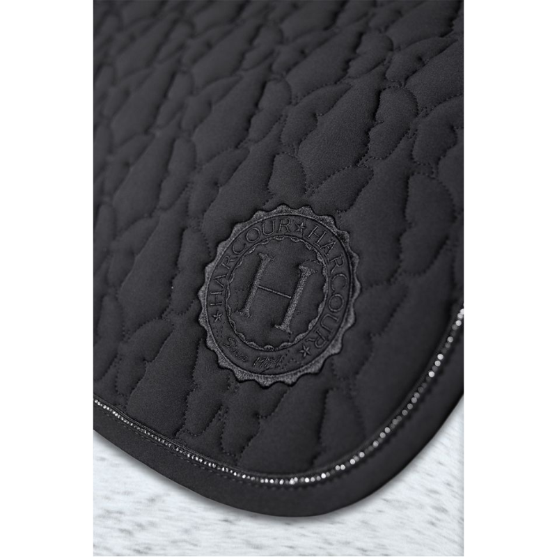 This model stands out with its butterfly quilting, an original and subtle detail that highlights its feminine character. A line of rhinestones runs along the saddle pad, adding a luminous and elegant touch. The official Harcour logo embroidered on the left side and the faux leather patch at the withers complete the premium finishes.