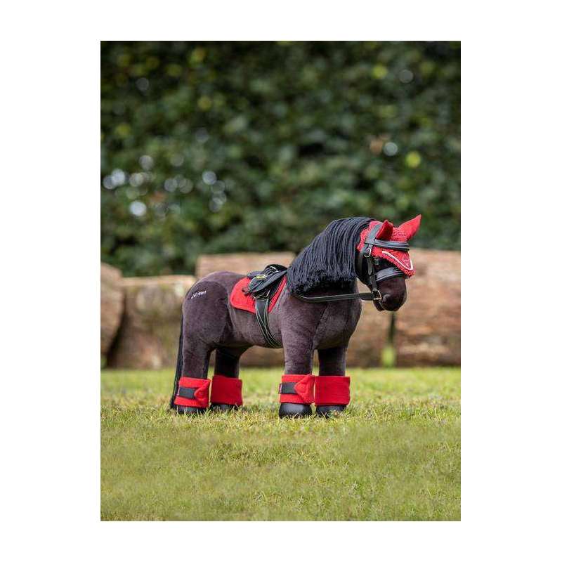 A stunning miniature replica of a real LeMieux saddle pad. Delicately quilted with a soft suede exterior and a cotton lining, it features a lowered girth strap area made of PU leather and the iconic LeMieux logo.