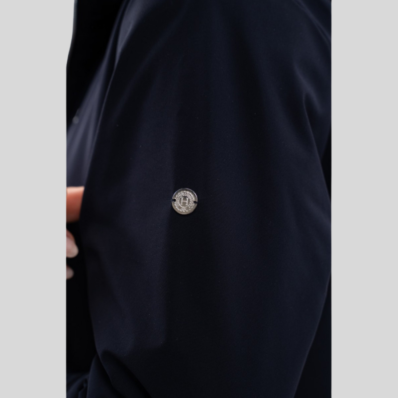 Silver embroidered Harcour logo on the chest and Harcour button on the upper left arm