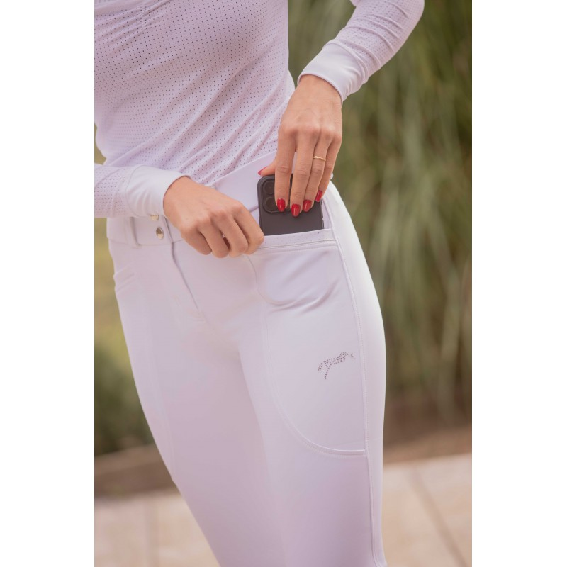 Grâce à son tissu stretch ultra-confortable, sa taille légèrement haute et ses renforts anti-dérapants aux genoux, il vous garantit une parfaite liberté de mouvement et une silhouette élégante en selle.