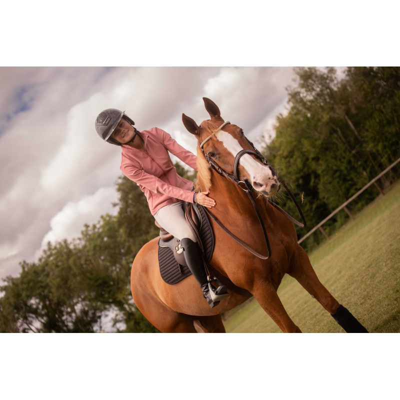 Élégante et résolument féminine, la veste Azylis est pensée pour vous accompagner aussi bien à l’entraînement qu’en concours hippique. Sa coupe cintrée près du corps, effet seconde peau, met parfaitement la silhouette en valeur tout en offrant une liberté de mouvement optimale grâce à son tissu entièrement stretch.