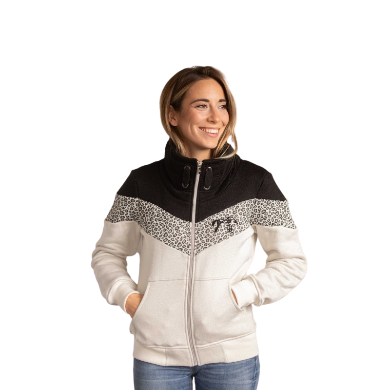 Féminin et tendance, ce sweat s’adapte aussi bien à la vie aux écuries qu’à un look casual en ville.