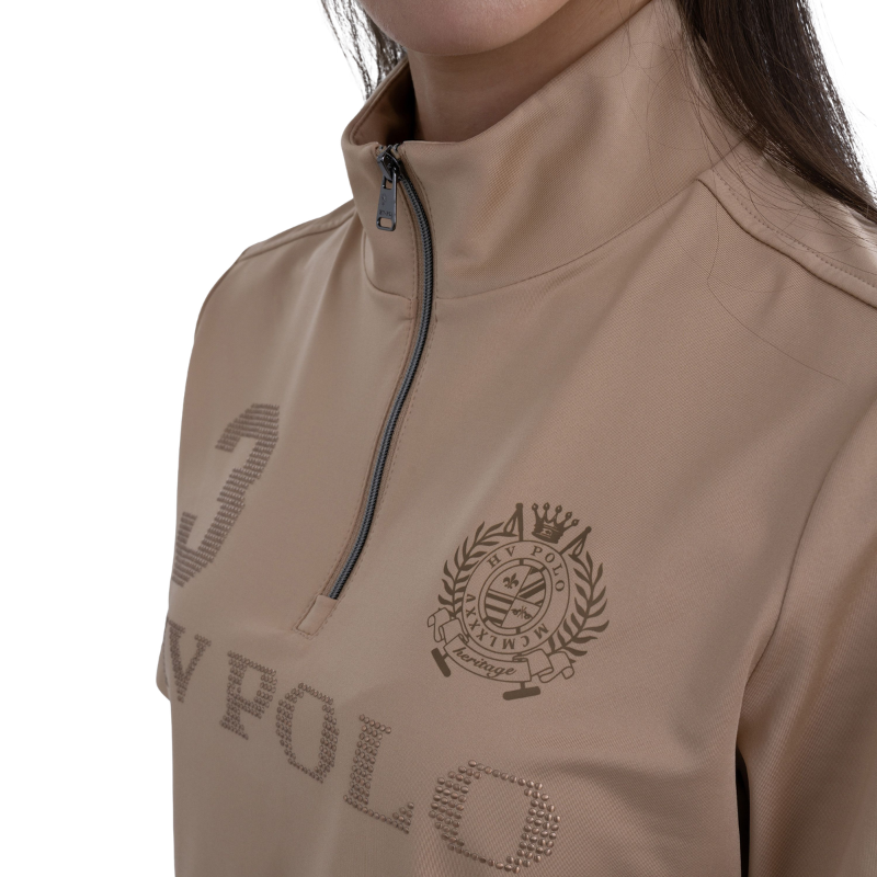 Le top technique HVPFavourite allie performance, confort et style signature pour les cavalières modernes. Sa coupe ajustée féminine offre une silhouette élégante tout en garantissant une grande liberté de mouvement.