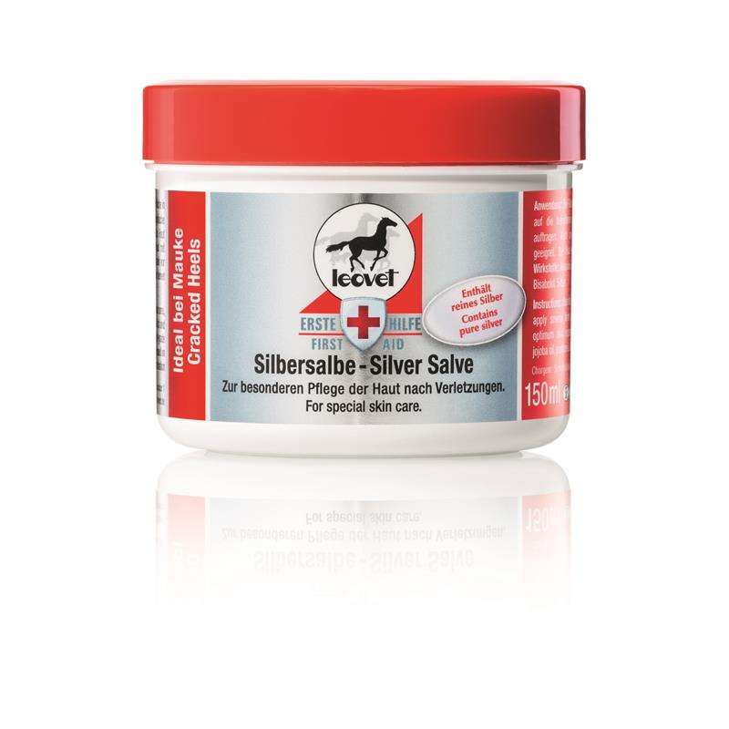 Soin spécial pour la peau. La pommade au argent contient de l'argent pur qui, grâce à sa grande surface, permet une libération continue des ions d'argent. Cela permet à l'effet antiseptique de l'argent de se déployer. Les infections diminuent, permettant à la peau de se calmer et de se régénérer. Des huiles végétales de haute qualité procurent une hydratation à la peau sèche et craquelée, la rendant lisse. Peut être utilisée pour soutenir le sabot contre l'humidité et les bactéries. La pommade au argent peut être utilisée en combinaison avec le spray à l'oxyde de zinc de Leovet.