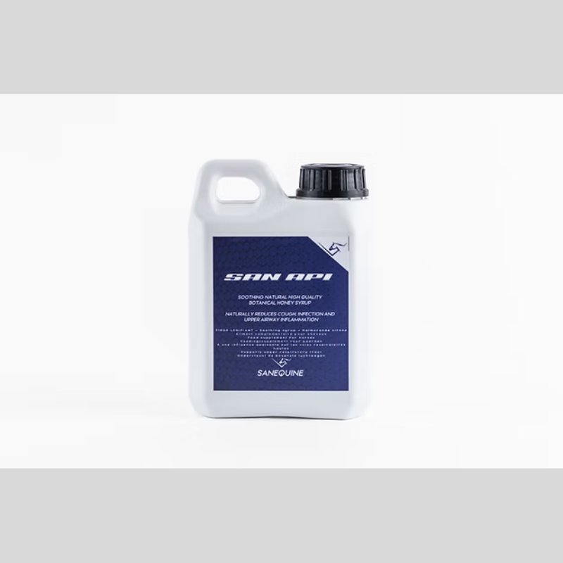 SAN API est un sirop végétal naturel de haute qualité, apaisant et bénéfique pour les voies respiratoires du cheval.
