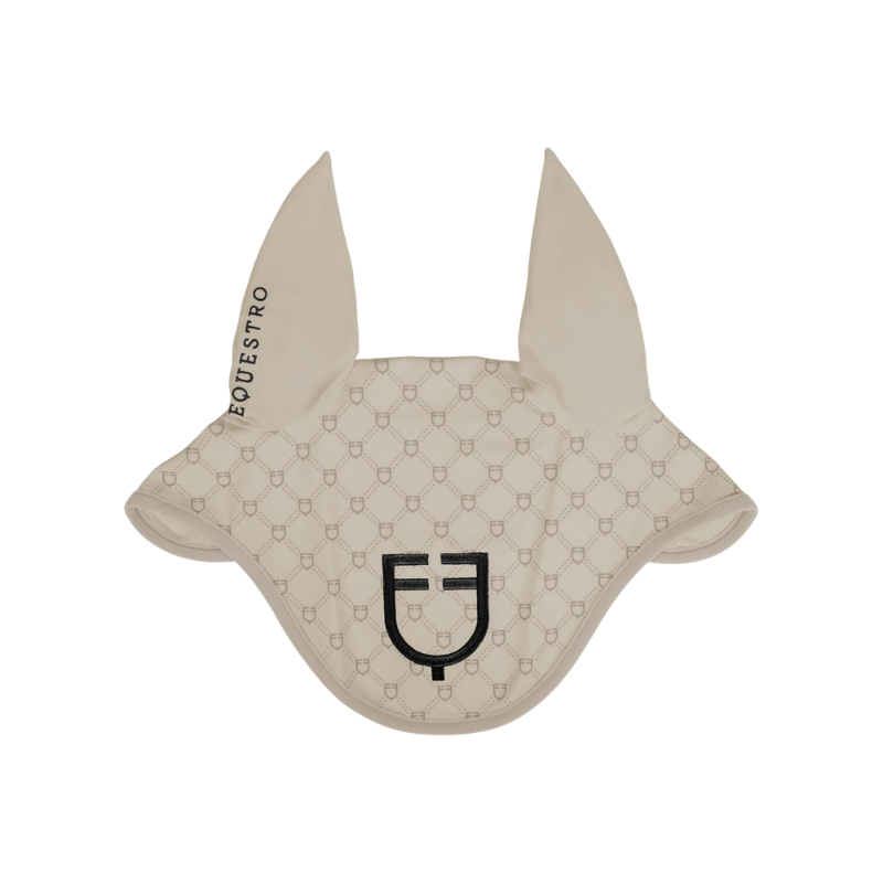 Ce bonnet anti-mouches pour cheval est fabriqué à partir d’un tissu technique de haute qualité, orné d’un élégant motif monogrammé.