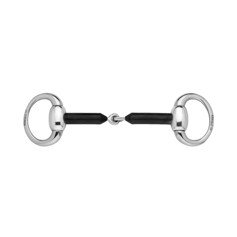 Eggbutt bit van 16 mm, vervaardigd uit duurzaam hard carbon en voorzien van ovale roestvrijstalen ringen. Dit bit heeft een enkelgebroken ontwerp met een glad oppervlak. Het maakt directe drukoverdracht mogelijk op de tong en de onderkaak, vergemakkelijkt door het onbeweeglijke mondstuk. De stabiele positionering in de mond van het paard zorgt voor een comfortabele ervaring en is bijzonder zacht voor de mondhoeken.