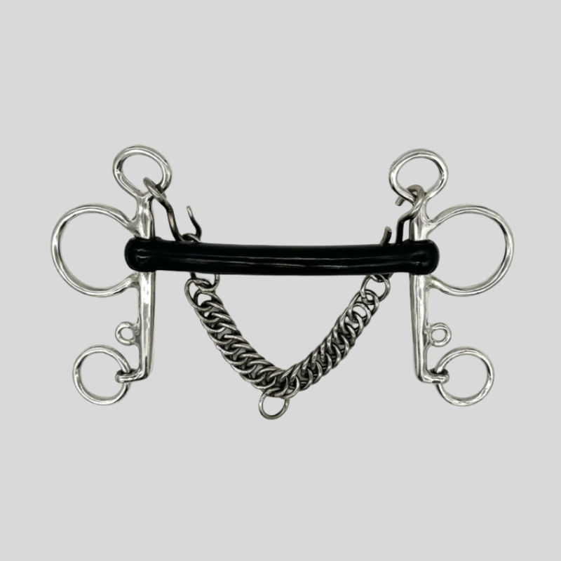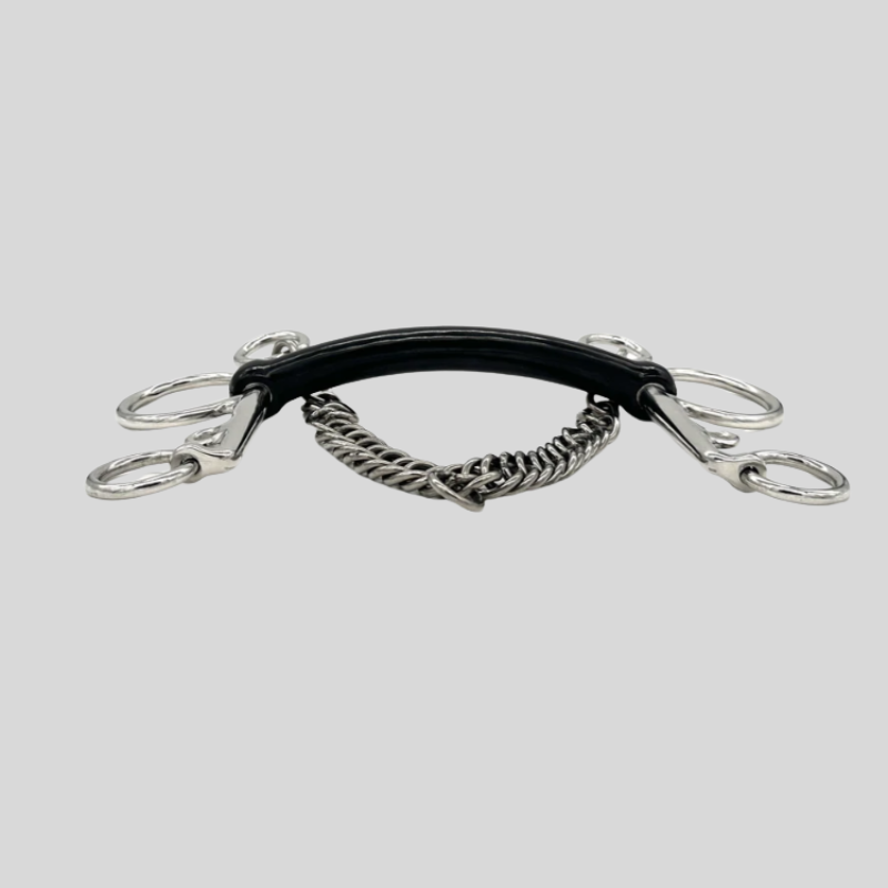 Het Mullen-mondstuk heeft een glad, doorlopend oppervlak dat de druk gelijkmatig over de mond van het paard verdeelt – ideaal voor paarden die goed reageren op een constante en zachte verbinding. Dit ontwerp helpt ongemak te verminderen en bevordert een ontspannen, gehoorzame aanleuning.