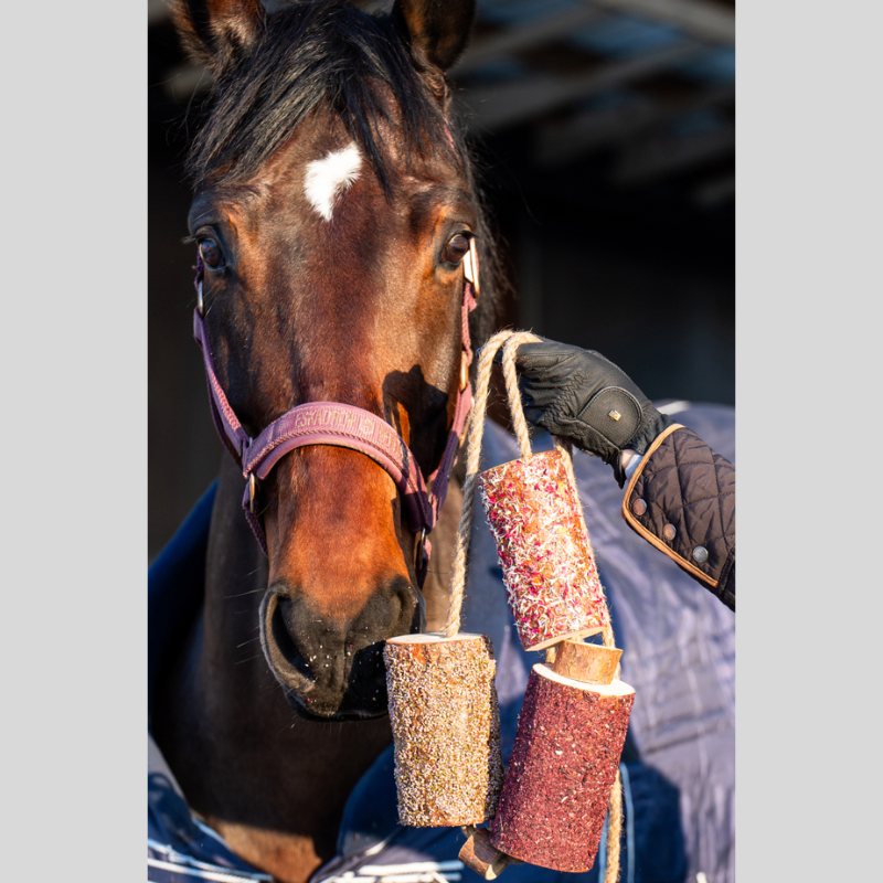 Ontworpen als een natuurlijk houten kauwspeeltje verrijkt met kruiden, nodigt dit wellnessaccessoire je paard uit om zich bezig te houden en zijn natuurlijke kauwbehoefte te volgen. Speels én rustgevend, het bevordert ontspanning en helpt verveling te verminderen, zowel in de box als in de paddock.