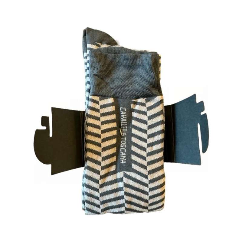 Maak kennis met de CT Jacquard Zig Zag Sok van Cavalleria Toscana - een perfecte combinatie van stijl en comfort voor de veeleisende ruiter. Deze sokken tonen een prachtig jacquardpatroon met het iconische Zig Zag-design, wat een vleugje verfijning toevoegt aan je rijkleding. Met precisie en oog voor detail vervaardigd, tillen deze sokken niet alleen je modieuze uitstraling naar een hoger niveau, maar bieden ze ook uitzonderlijk comfort en ondersteuning tijdens lange uren in het zadel.