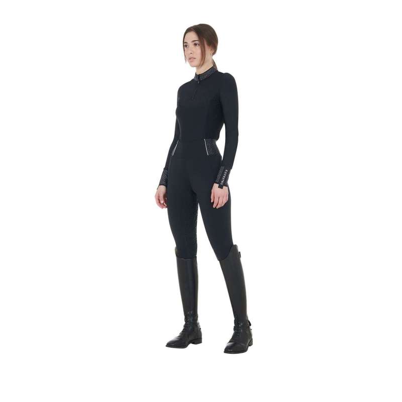 - Graphics met Equestro rhinestone-logo op de achterkant van de taille.