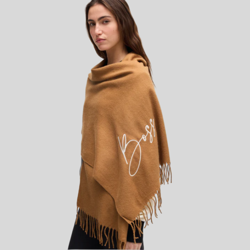 De franje-afwerking en het grote geborduurde BOSS-handtekeningslogo zorgen voor een moderne en elegante uitstraling.