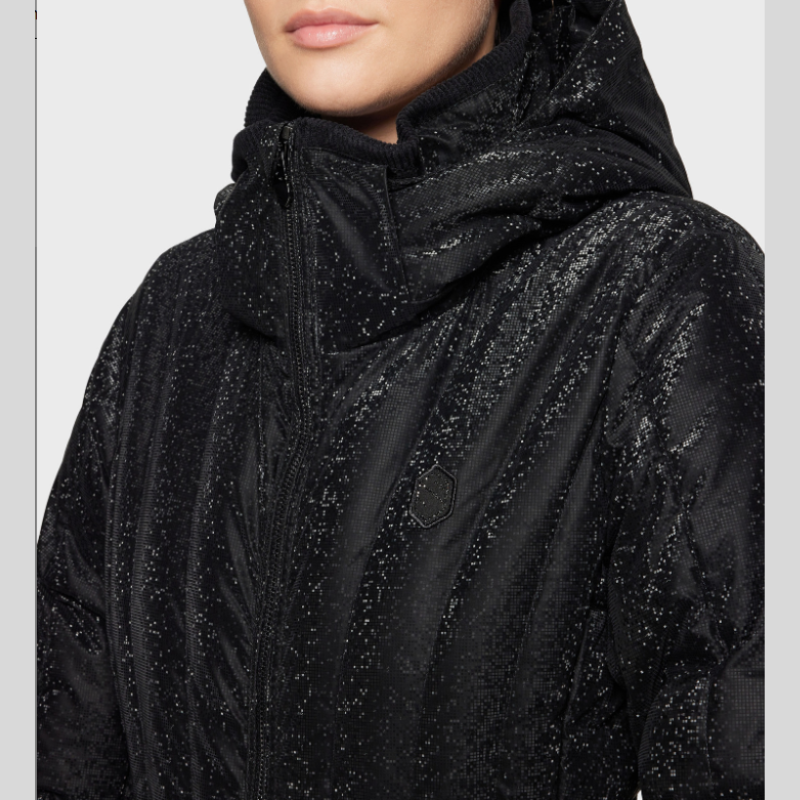 E-commerceversie van de iconische Courchevel-Ice donsjas, ontworpen voor amazones die op zoek zijn naar een avant-gardistische, getailleerde en functionele stijl, zowel voor dagelijks gebruik als te paard.
