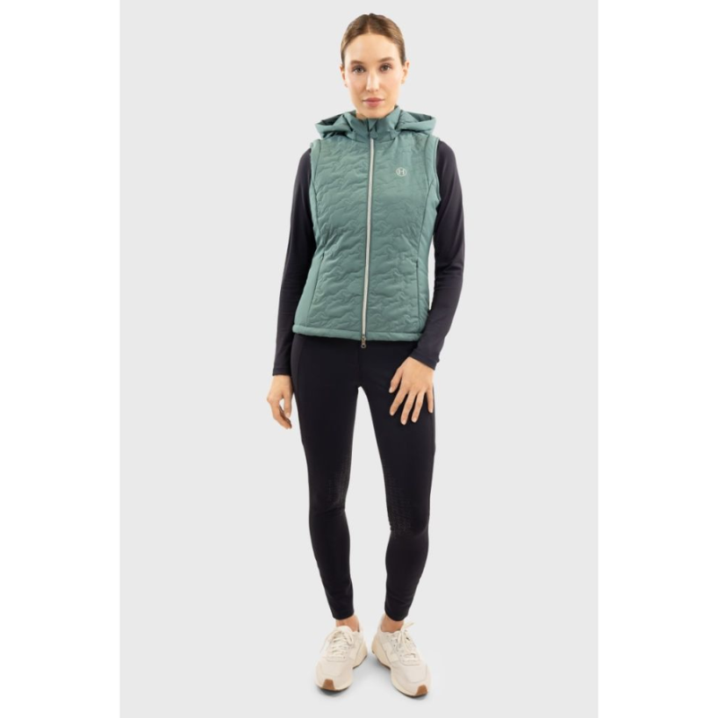 Het doorgestikte paardenmotief aan de voorkant, een echte Harcour-signatuur, geeft het model een verfijnde en onderscheidende uitstraling. Speciaal ontworpen voor het paardrijden is het gilet voorzien van drukknopen onderaan de rug, die extra bewegingsvrijheid bieden in het zadel. Het Harcour-logo op de linkerborst maakt het geheel stijlvol af.