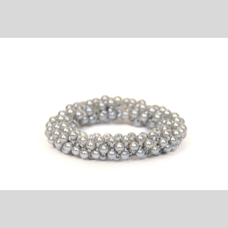 Het bestaat uit een rekbaar elastiek waaraan imitatieparels zijn bevestigd met glinsterende draden. Dit ontwerp combineert comfort, een stevige fixatie en esthetiek, terwijl het kapsel op subtiele wijze wordt geaccentueerd.