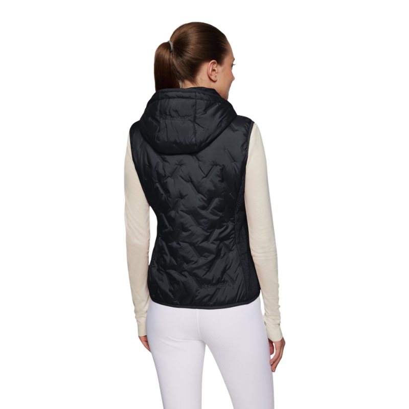 Het stijlvolle ontwerp met ton-sur-ton rits, ultrasoon stikwerk en een onzichtbare zakrits zorgt voor een strakke, moderne uitstraling. De afneembare capuchon biedt veelzijdigheid, terwijl de Swarovski® blazon patch een subtiele luxe toets toevoegt.